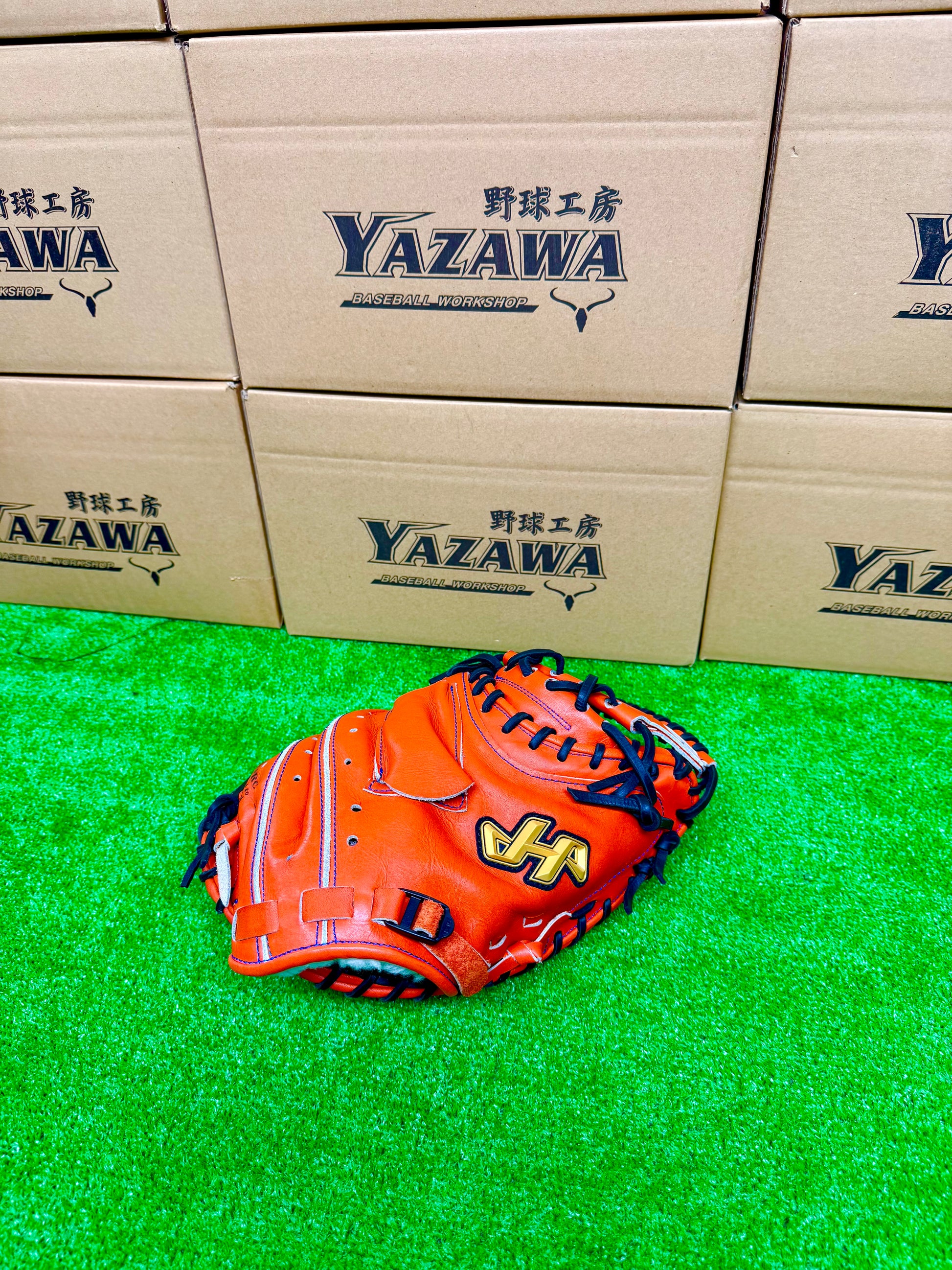 ハタケヤマ硬式キャッチャーミット V-M2HR Vオレンジ【型付け済み】